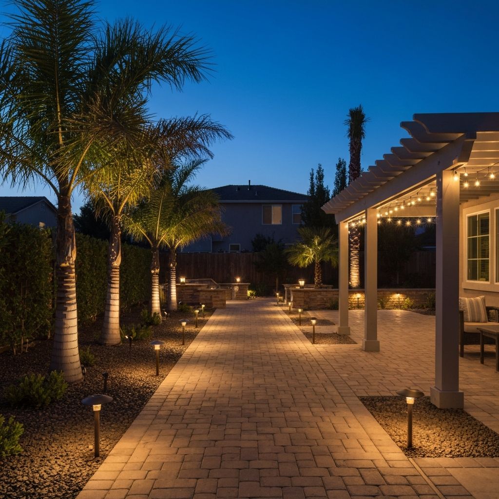 Extend your outdoor living into the evening with professionally designed and installed landscape lighting. Path lights, uplighting, and accent lighting.